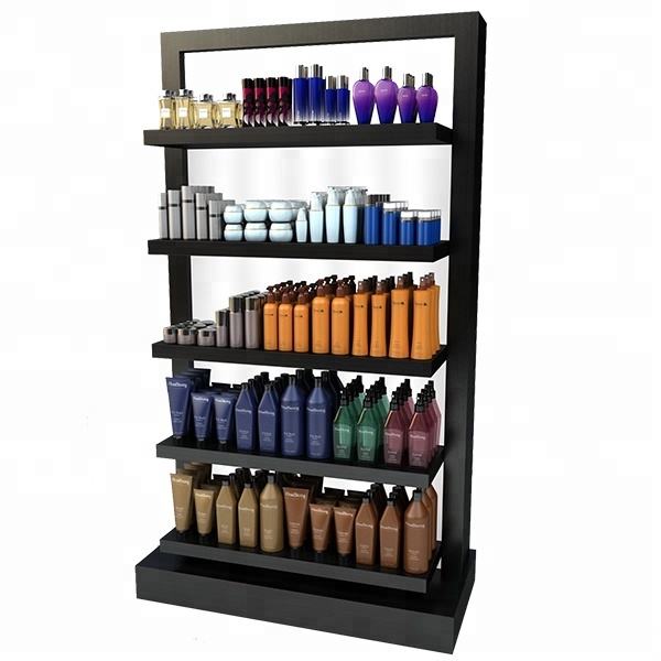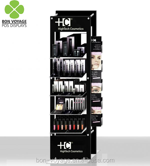 Soporte de piso de exhibición de maquillaje de uso de tienda de cosméticos de metal personalizado
