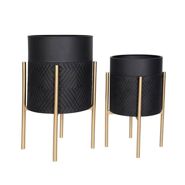 Metal personalizado para interior o exterior, hogar, fiesta de Navidad, maceta decorativa, maceta de diseñador, maceta con soporte dorado