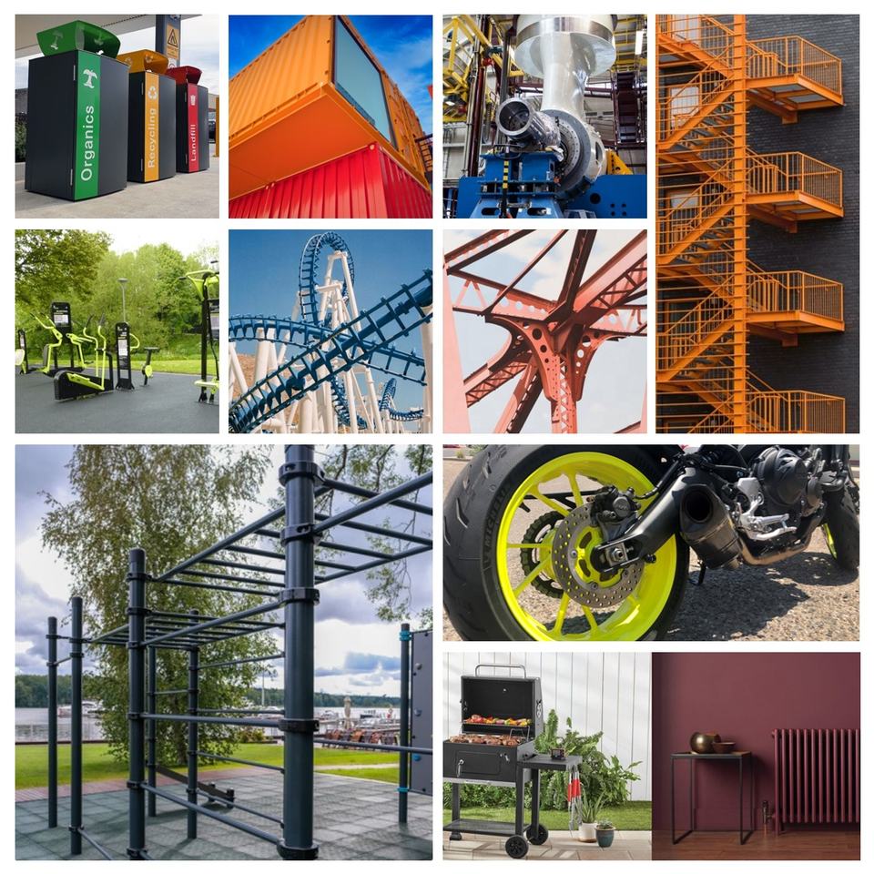 Pintura aplicada, Pintura de barco, Aplicación de revestimiento, Pintura de coche, Barniz aislante eléctrico, Pintura para muebles, Recubrimiento de papel, Abrigo Plastico, Pintura de señalización vial, Revestimiento de goma