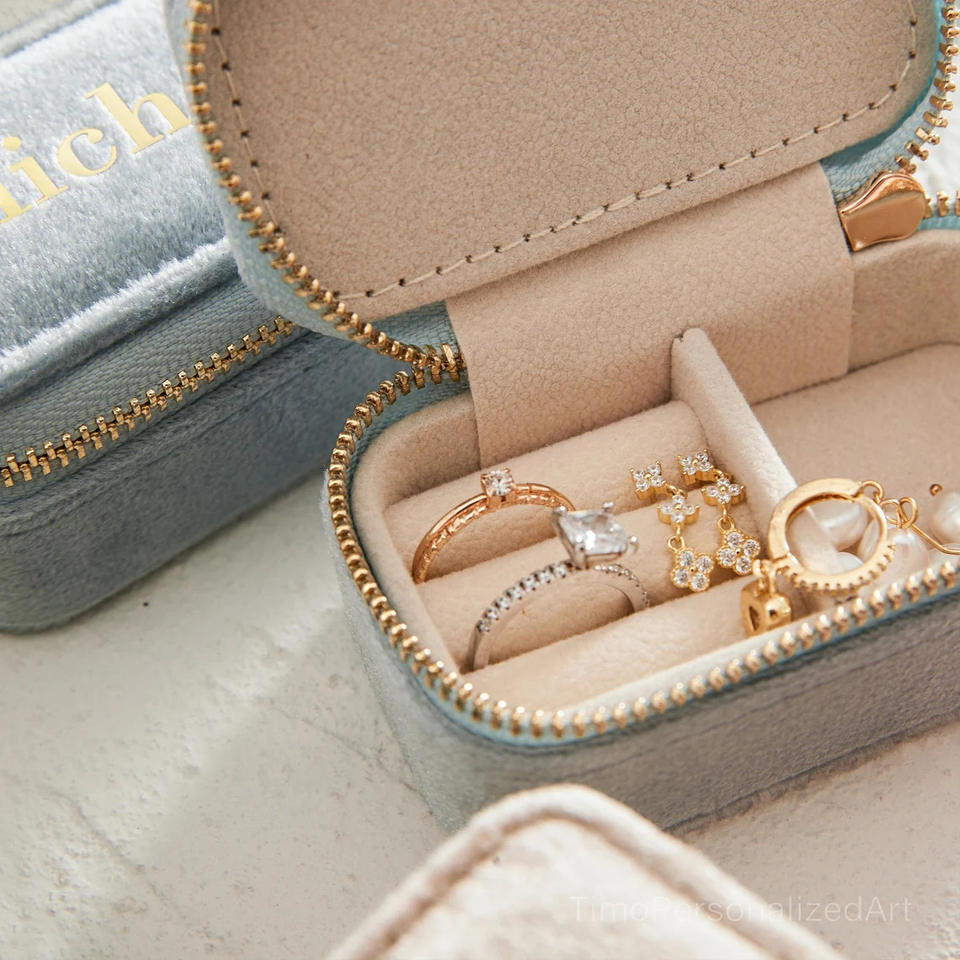 Mini joyero de terciopelo personalizado, caja de almacenamiento de joyería, regalo de cumpleaños, regalos de graduación, regalo de dama de honor