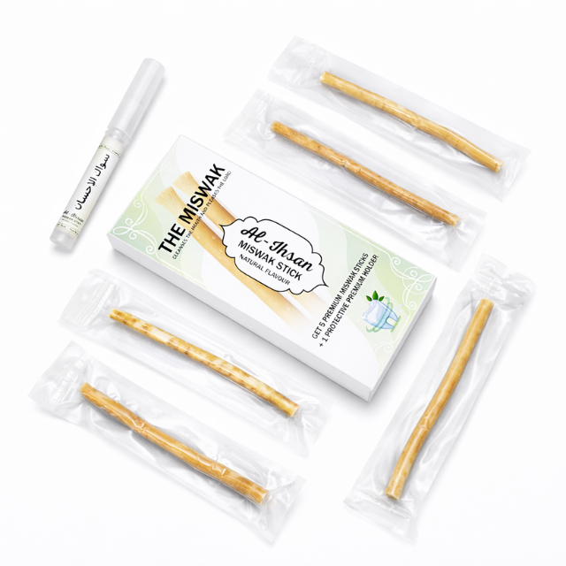 Caja de Regalo Personalizada para Miswak | 5 Miswaks Envasados al Vacío con 1 Estuche Protector | Limpiador Dental Natural | Barra de Cuidado Bucal y Dental