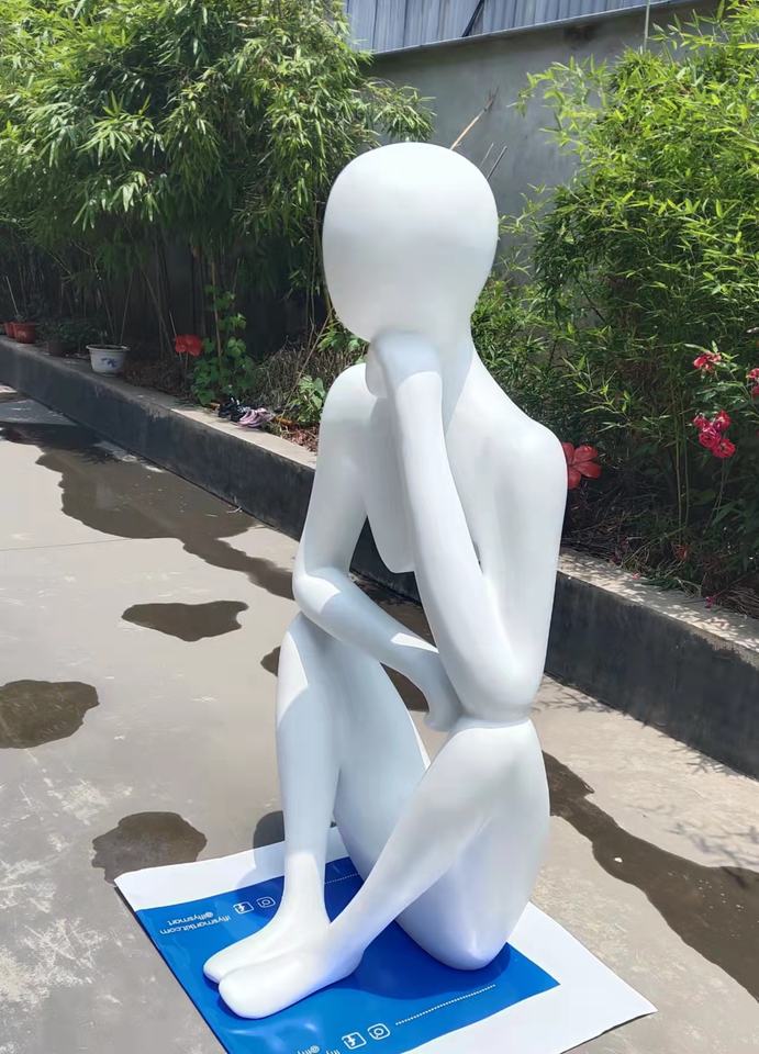 Escultura de Fibra de Vidrio Personalizada de Arte Moderno, Estatua de Arte Corporal Humano Hueca, Mujer Pensando, Decoración para Jardín y Hogar
