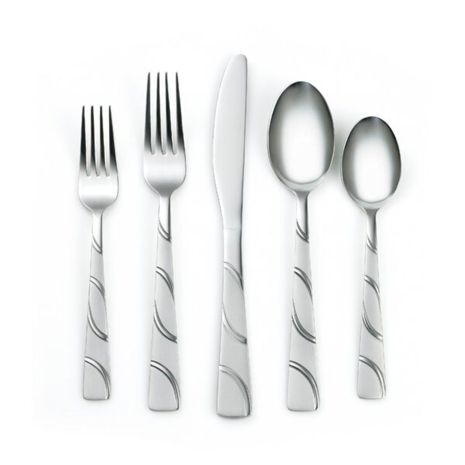 Cubiertos de plata pulida mate de diseño moderno personalizado, cubiertos de acero inoxidable (juego de 5) Para Hotel, restaurante, hogar