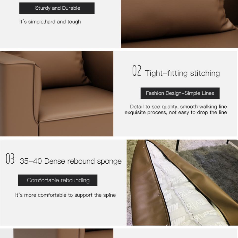 Conjunto de Sofás de Oficina de Cuero PU de Diseño Moderno Personalizado para Tres Personas, Elegante y Cómodo para Aplicaciones en Villas, Talleres y Centros Comerciales