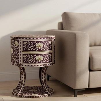 Muebles de Salón Modernos Personalizados con Incrustaciones de Hueso Floral, Mesa de Noche y Cómoda Hechas a Mano en India