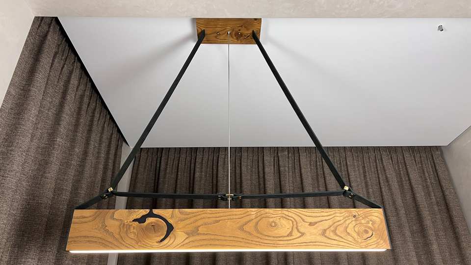 Candelabro de madera lineal moderno personalizado con forma de rectángulo, lámpara colgante de cobre dorado, lámpara de isla de cocina para decoración interior
