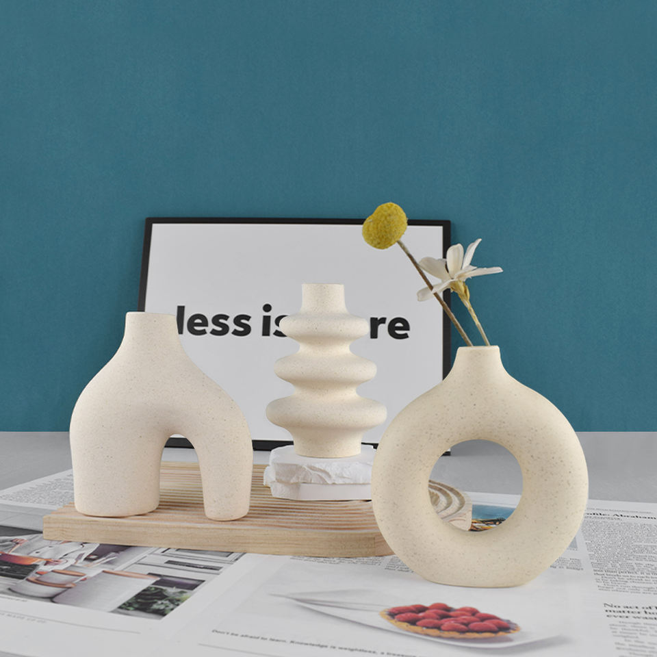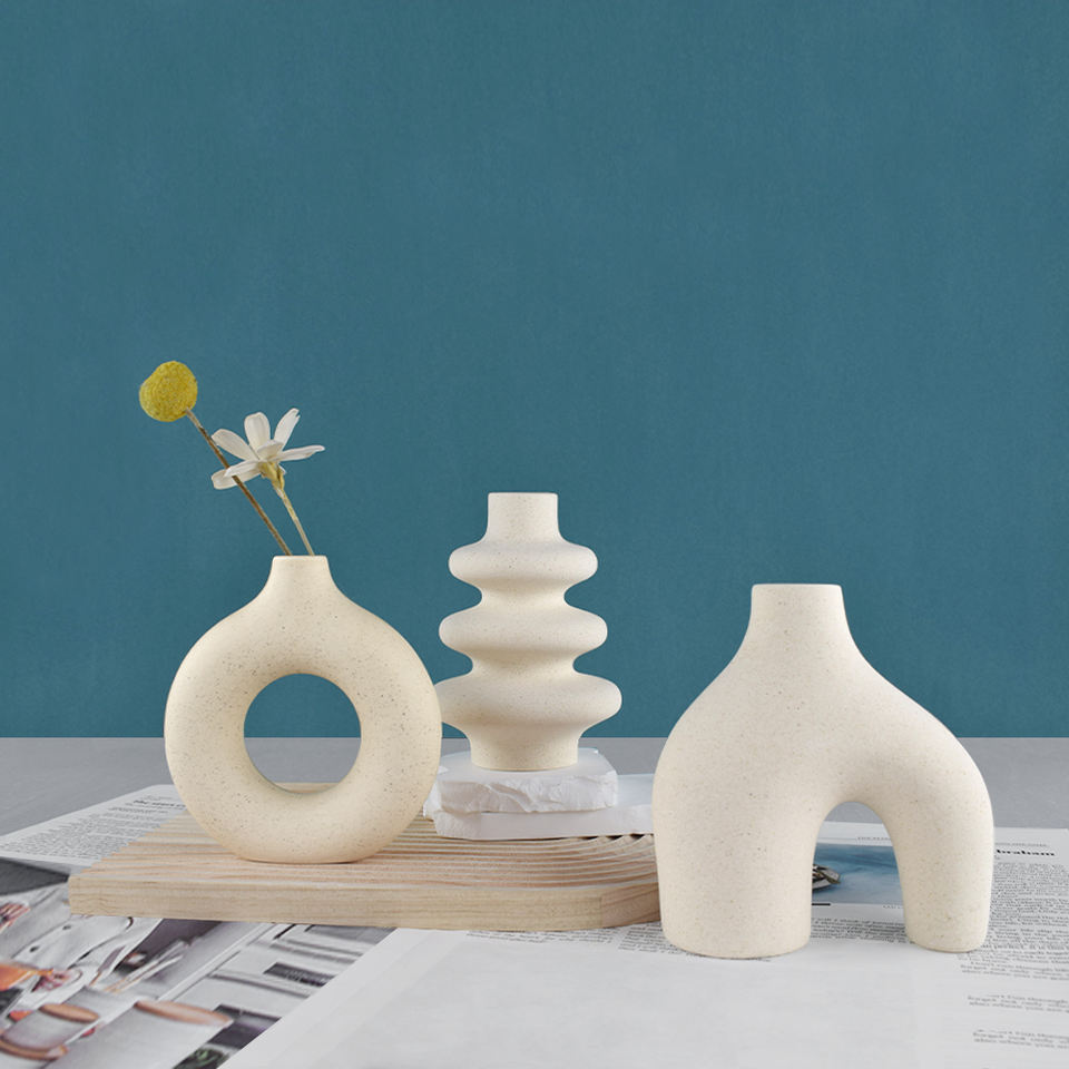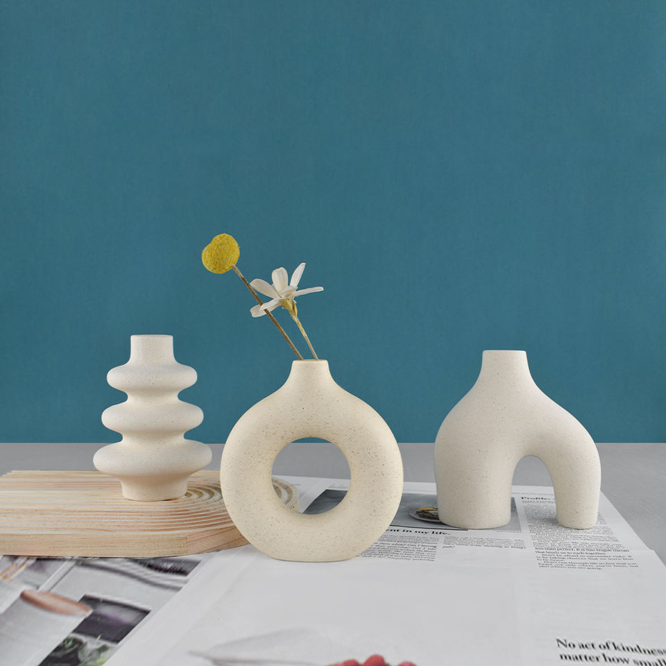 Juego de 3 Jarrones Nórdicos Modernos Personalizados, Decoraciones Mini para Sala de Estar, Juego de Jarrones de Cerámica Mate para Decoración de Hotel, Hogar y Oficina