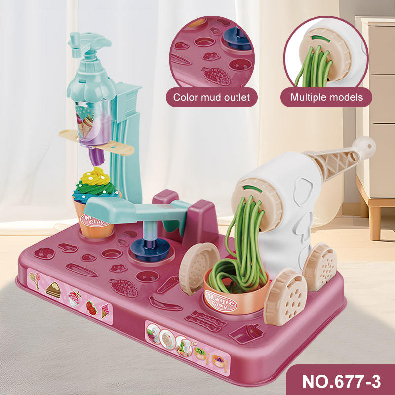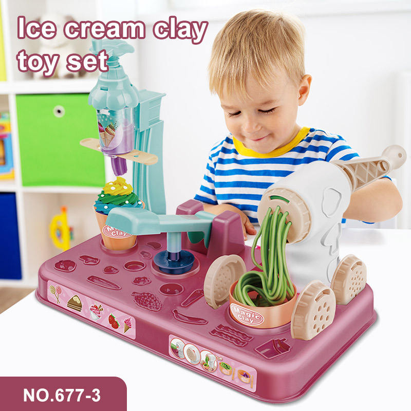 Juego de juguete de arcilla de plástico multifuncional personalizado pintado a mano DIY máquina de fideos de helado en caja juegos de cocina para niños