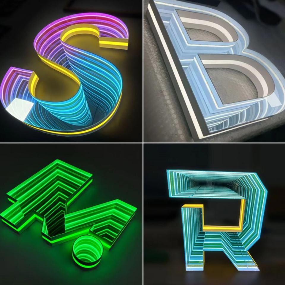 Letras y Números de Espejo Infinito Multicapa Personalizados, Letrero LED Dinámico con Efecto Abismo, Decoración Luminosa