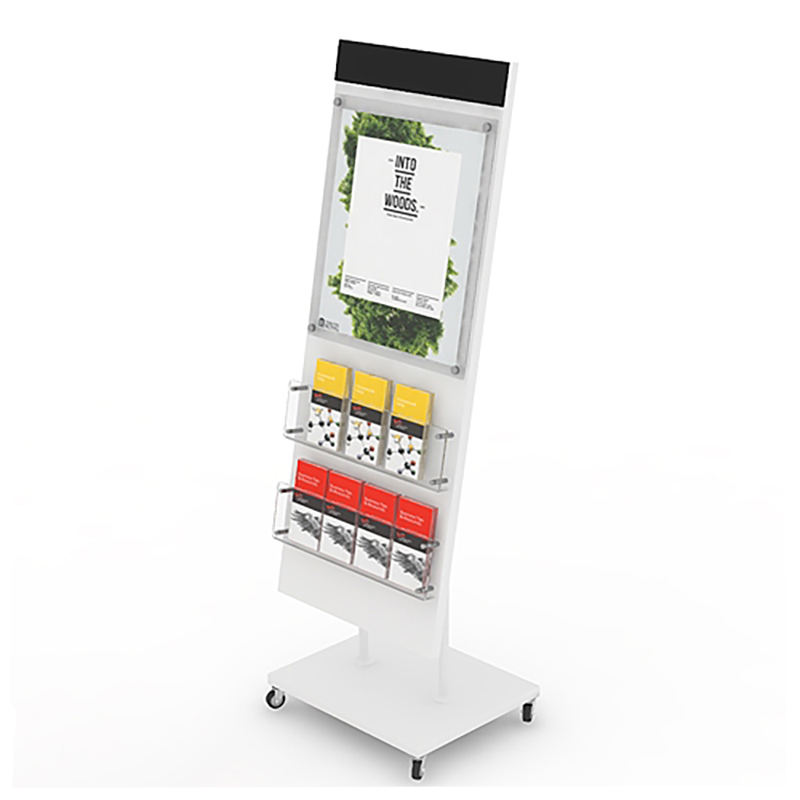 Expositor de Folletos A4 Personalizado de Múltiples Niveles, Estante Móvil de Metal y Acrílico con Ruedas para Exhibición en Librerías
