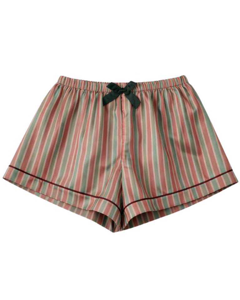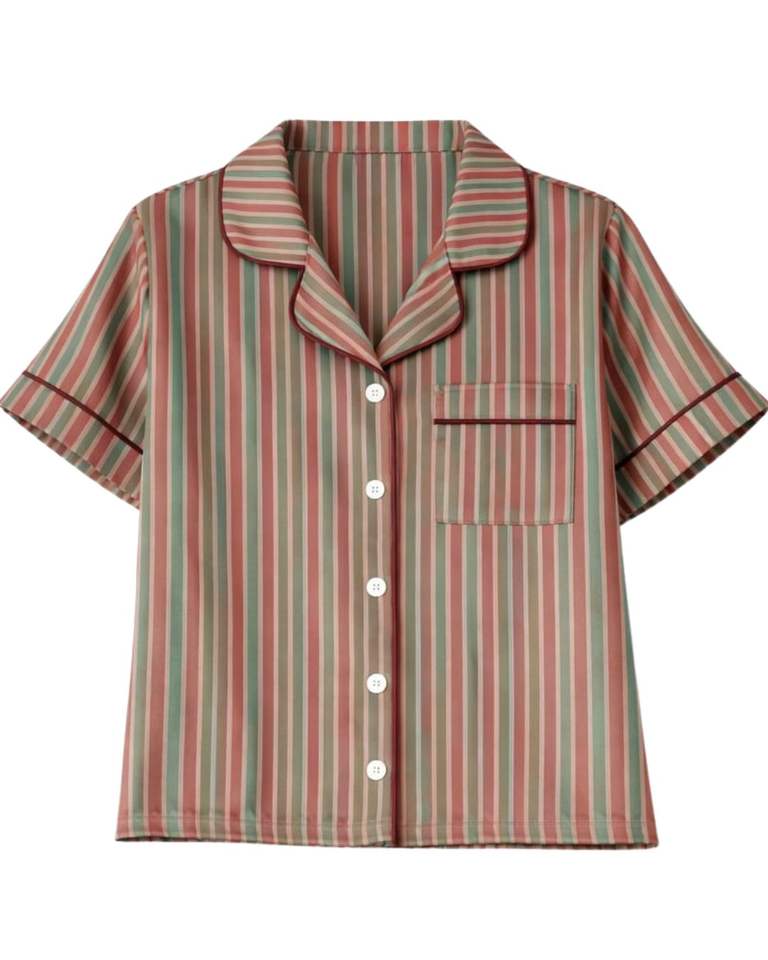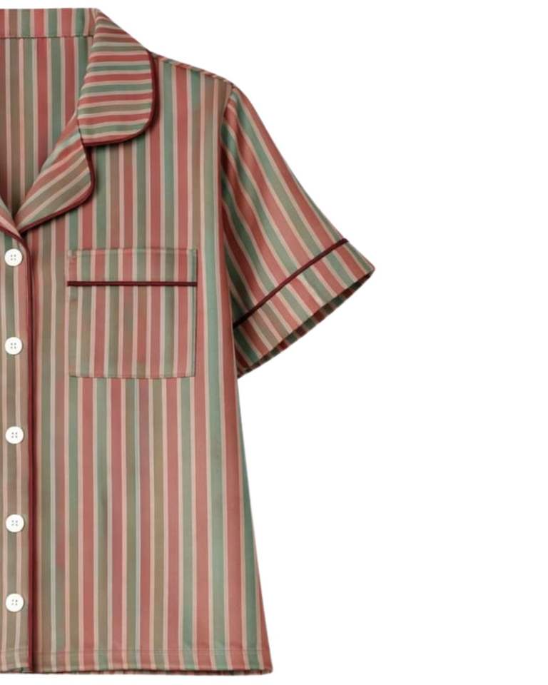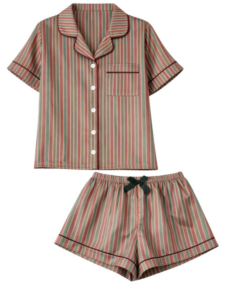 Conjunto de Pijama Personalizado para Mujer, Multicolor, a Rayas, Manga Corta, con Botones, Satinado, Dos Piezas, Ropa de Dormir, Pantalones Cortos