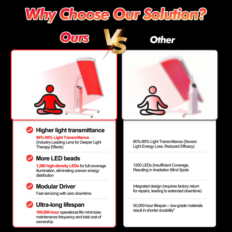 Panel de Terapia de Luz Roja Personalizado Multionda, Infrarrojo Azul, 5 Ondas, Grado Médico, 1500W, 8 Longitudes de Onda (660nm, 850nm), con Soporte de 360°