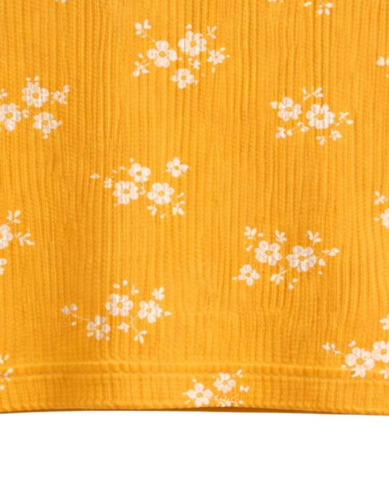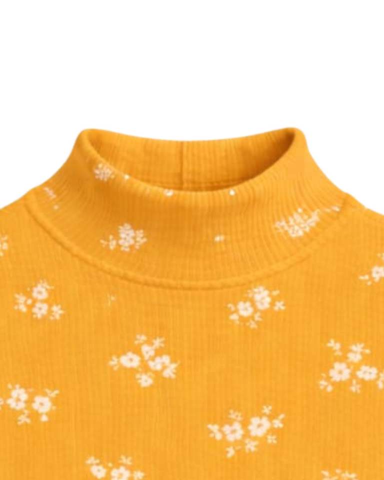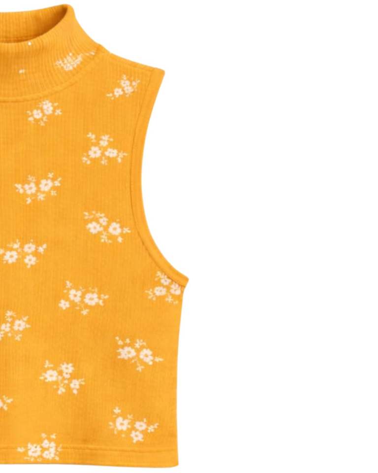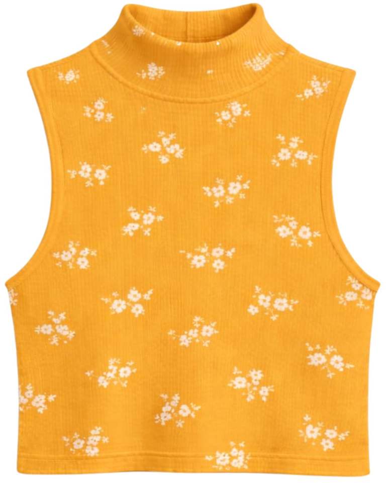 Top Corto Personalizado Amarillo Mostaza con Estampado Floral, Cuello Alto, Sin Mangas, Ajustado, Elástico, Verano, Casual, para Mujer