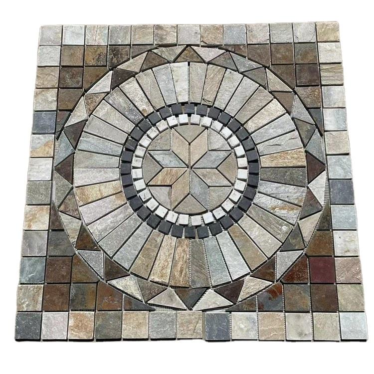 Azulejos de Piso de Mosaico de Pizarra Natural Multicolor Personalizados, Montados en Malla, para Pisos