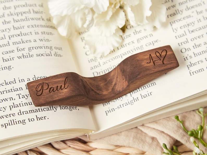 Soporte de página de libro de pulgar de madera natural personalizado para amantes de los libros