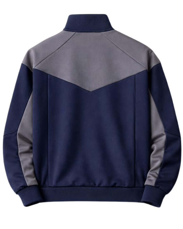 Conjunto Deportivo Personalizado Azul Marino y Gris para Hombre, Chaqueta con Cierre Completo, Pantalones Deportivos con Cintura Elástica, Fabricante Personalizado