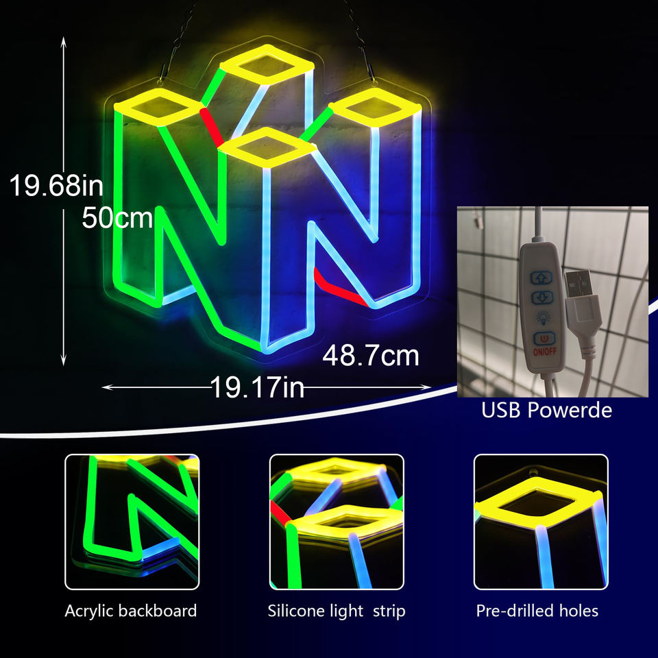 Letrero de neón personalizado 20*19 pulgadas DISEÑO DE Nintendo letrero de neón LED con impresión UV para decoración de pared y sala de juegos, tienda