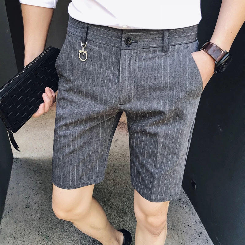 Nuevos shorts de hombre a rayas, corte slim fit, largo hasta la rodilla, estilo casual.