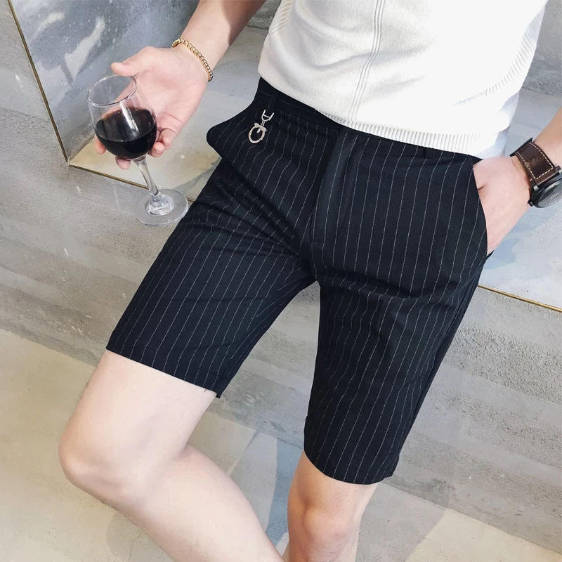 Nombre del producto:Nuevos shorts de hombre a rayas, corte slim fit, largo hasta la rodilla, estilo casual.
