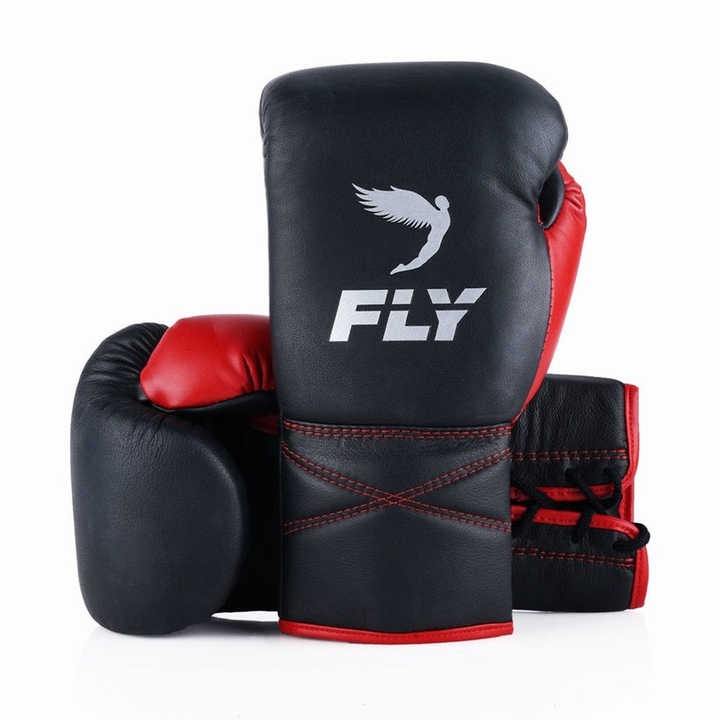 Nuevo modelo personalizado de guantes de boxeo de cuero de vaca con mosca, muñeca con cordones para entrenamiento de lucha y kick boxing con logotipo personalizado