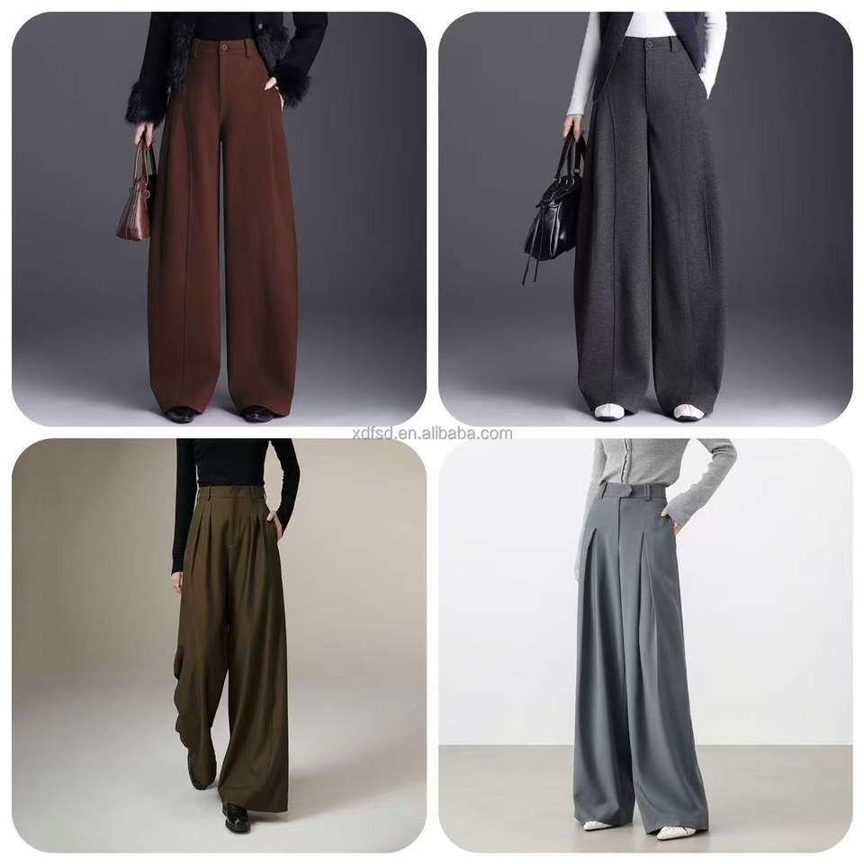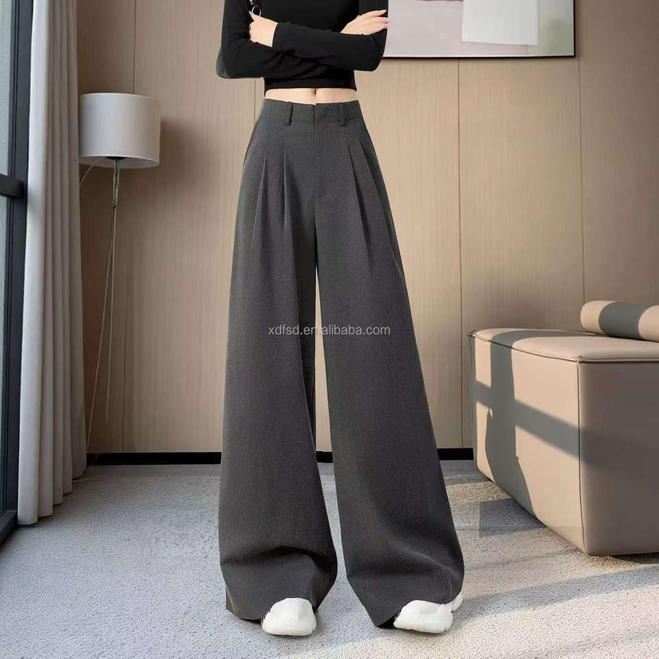 Pantalones de Mujer Formales de Cintura Alta, Color Sólido, Personalizados, Pantalones Anchos Casuales de Moda para Oficina, Profesionales