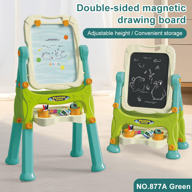 Tablero de dibujo de plástico giratorio de doble cara de 360 ° OEM personalizado, pizarra blanca de piernas largas de 2 a 4 años para niños