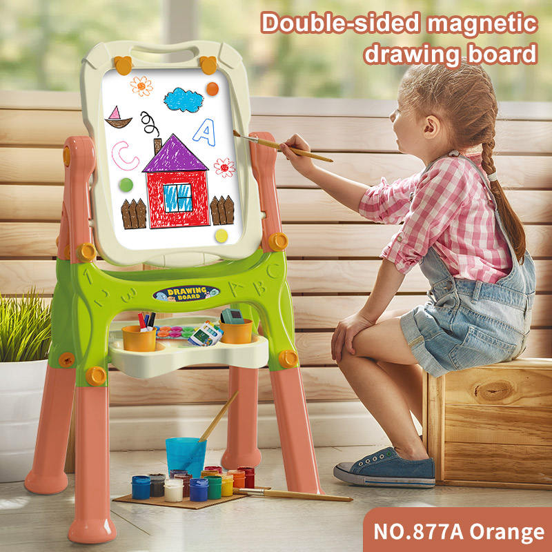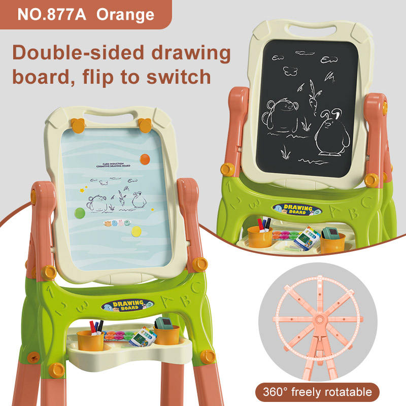 OEM Personalizado 360 ° Pizarra de Dibujo Giratoria de Doble Cara de Plástico con Patas, Pizarra Blanca y Negra para Niños