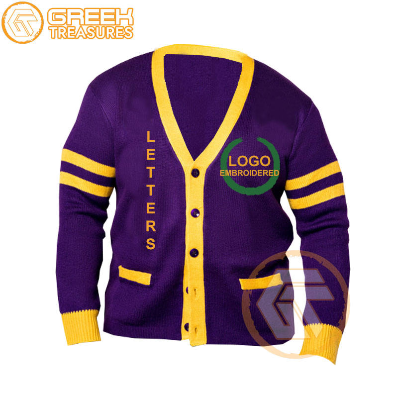 Cárdigan bordado acrílico Omega personalizado fraternidad alta calidad griego Psi hombres suéteres transpirables cárdigans de hermandad