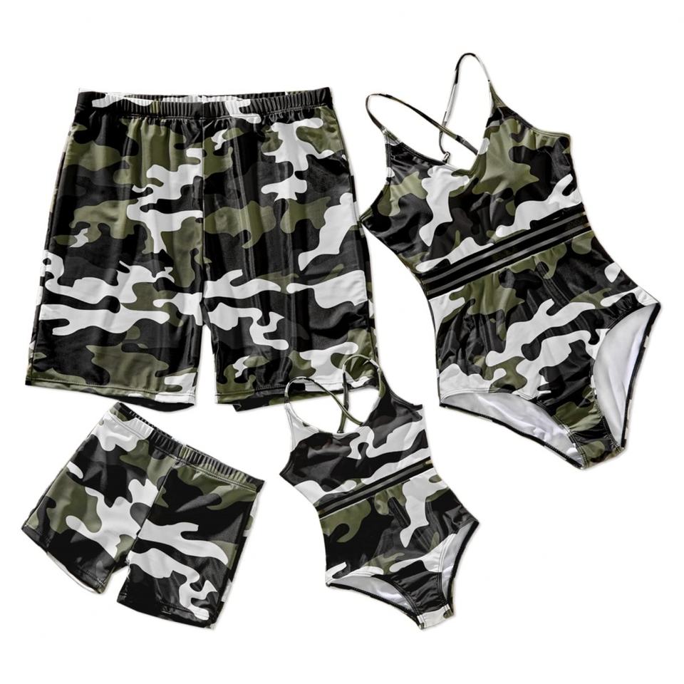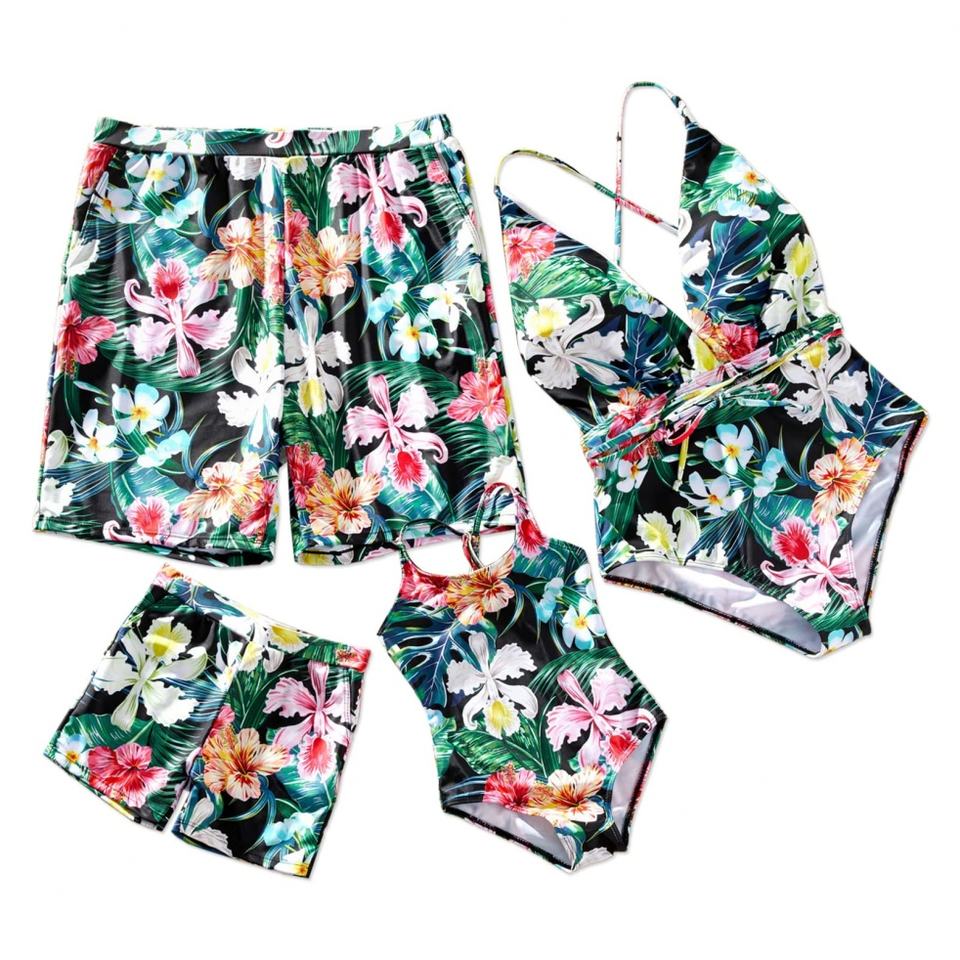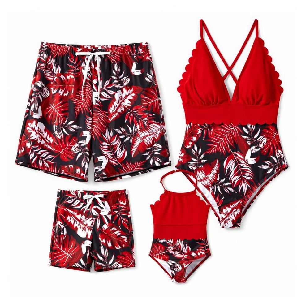 Conjunto de Bikini Personalizado de Una Pieza para Familia, 4 Piezas, Traje de Baño Deportivo para Mujer, Estampado de Flores Rojas