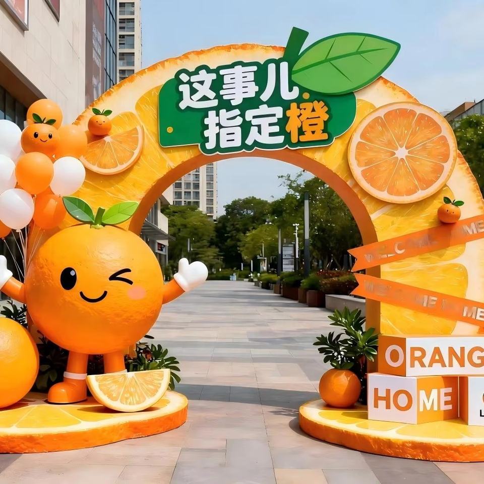 Arco Decorativo Personalizado con Temática Naranja para Exteriores, Instalación en Plazas Comerciales, Instalaciones para Fotos, Gran Escala, FRP Tallado a Mano, Alta Visibilidad