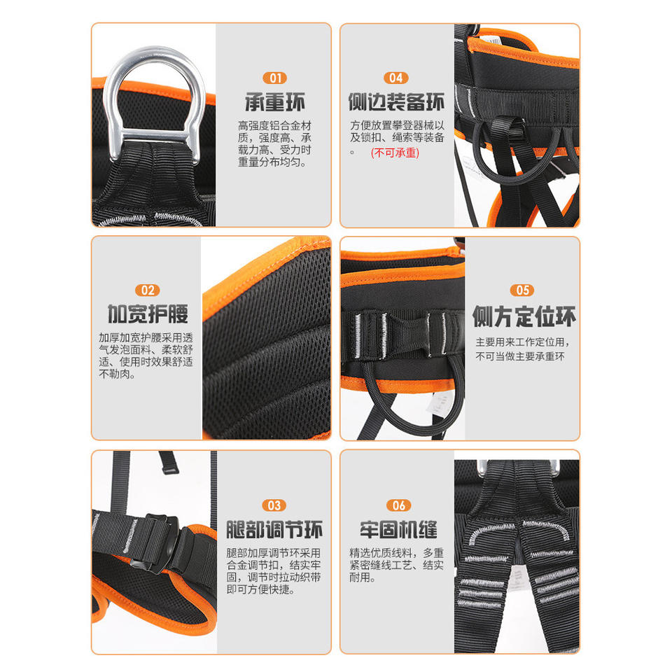 Arnés de Seguridad Personalizado para Escalada y Rapel al Aire Libre, Medio Arnés con 2 Anillas en D, Resistencia a la Rotura de 1200 Kg, Estándar Nacional