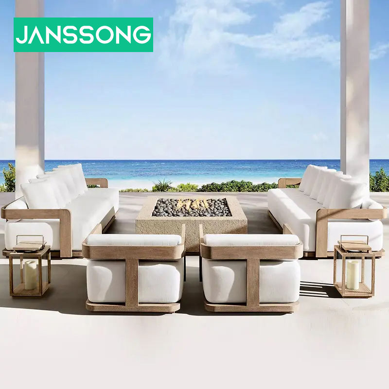 Muebles de Jardín de Madera de Teca, Diseño Impermeable para Patio Exterior, Sofá de Jardín Personalizado