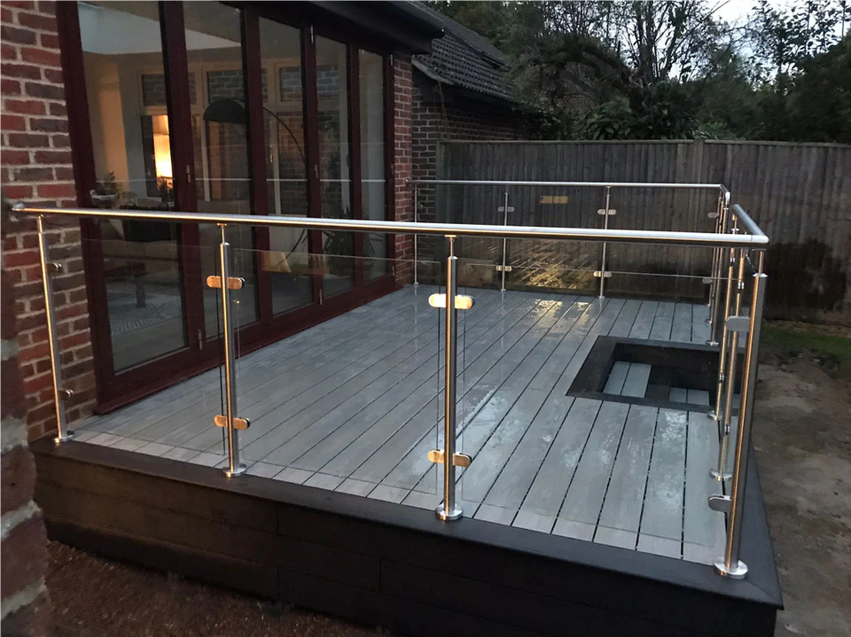 Barandilla de vidrio de acero inoxidable para exteriores personalizada para porche delantero, casa de pueblo, balcón