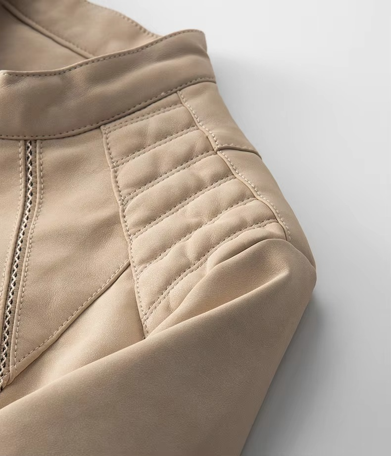 Chaqueta de Cuero Sintético PU Personalizada, Chaqueta de Cuero Informal Retro con Cuello Alto, Cierre de Cremallera, Resistente al Viento, Corte Holgado, Chaquetas para Hombre