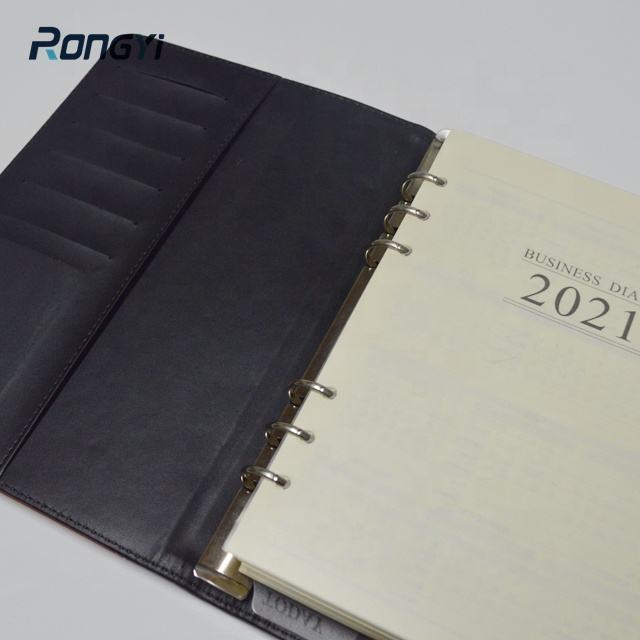 Cuaderno diario A5 de cuero PU personalizado, 6 anillos, hojas sueltas magnéticas con logotipo personalizado, cuaderno de notas de tamaño 8,5 ''(A5)