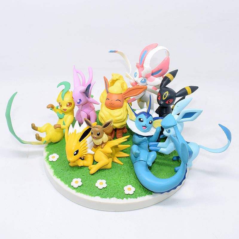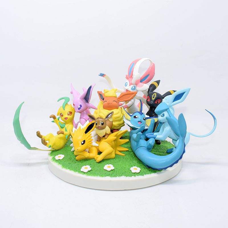 Juguetes de Resina de PVC Personalizados de Alta Calidad, Figuras de Anime de Ash Ketchum en Postura Acostada, 9 Piezas/Juego, 14 cm, Eevee Eeveelution