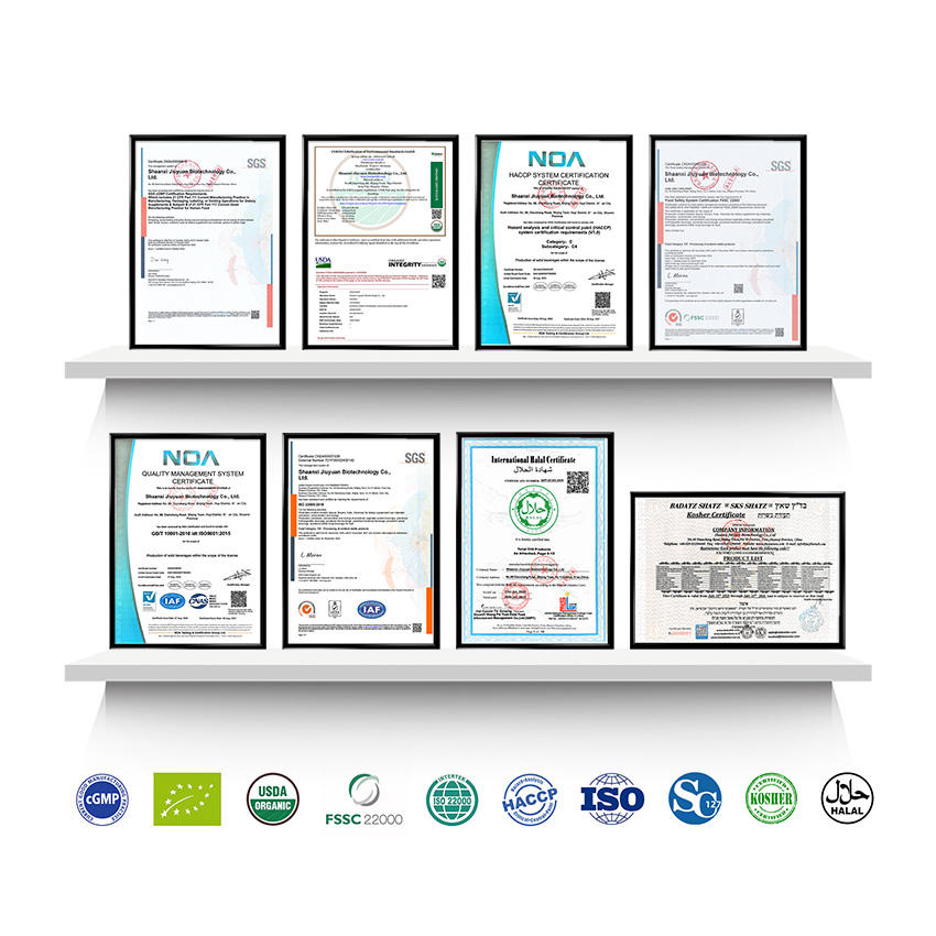 Certificado:CGMP, ORGÁNICO, HACCP, FSSC22000, ISO22000, ISO9000, KOSHER, HALAL
