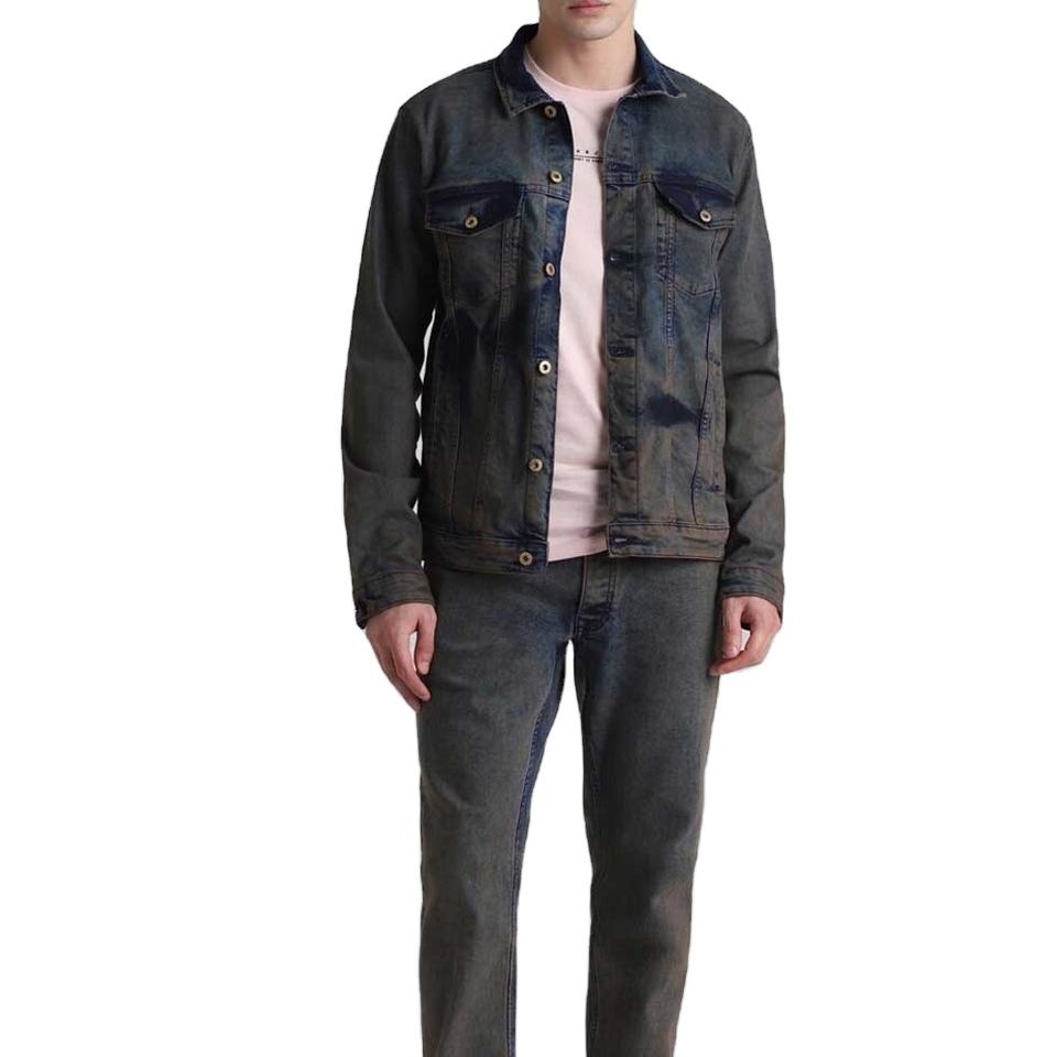 Chaqueta vaquera para hombre con embalaje personalizado de fabricante pakistaní, chaqueta vaquera desteñida al sol con lavado ácido de calidad premium a precio barato para hombre