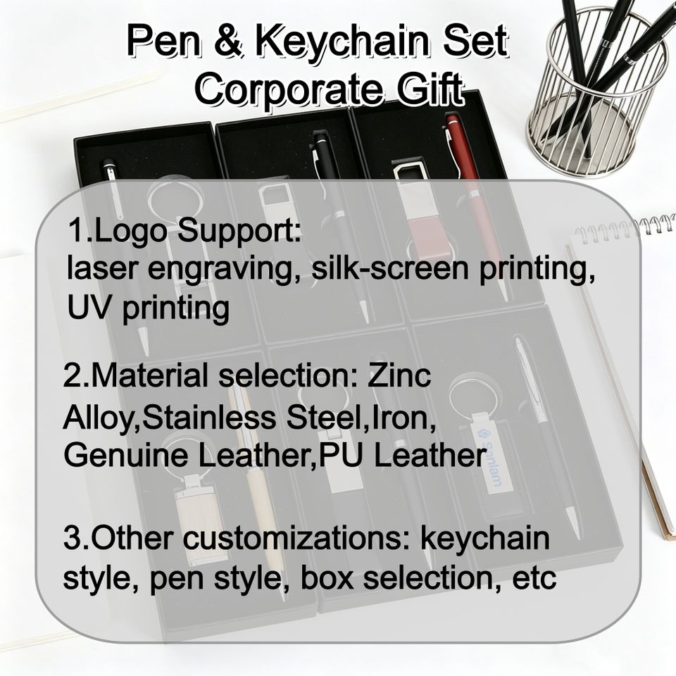 Caja de Regalo Personalizada para Bolígrafos y Llaveros, de Cuero y Metal, para Clientes VIP, Venta Directa de Fábrica, Set de Regalo Corporativo de Lujo, Promocional