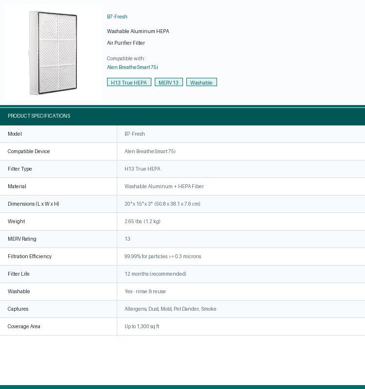 Filtro HEPA Personalizado OEM/ODM, Repuesto de Filtro de Carbón Pre-filtrante para Purificador de Aire Alen 75i, Uso Doméstico, Alta Eficiencia