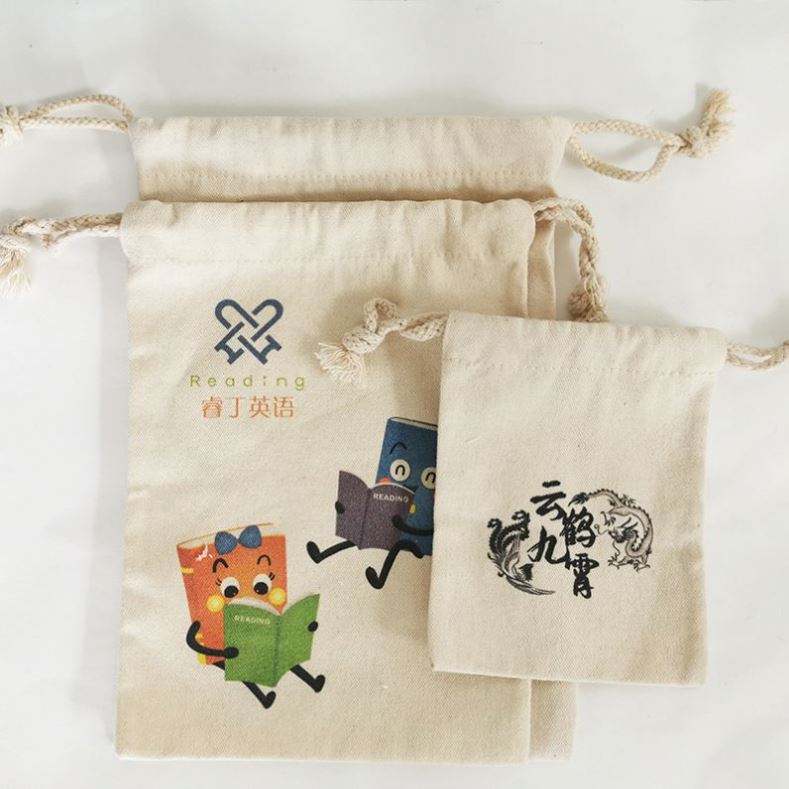 Bolsa de Lona de Algodón Personalizada con Logotipo Impreso en Múltiples Colores, con Doble Cordón