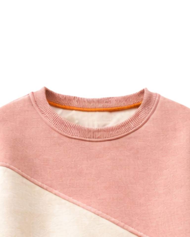 Sudadera de Forro Polar Personalizada en Bloques de Color Rosa y Naranja para Mujer, Mezcla de Algodón, Cuello Redondo, Informal, para Invierno, OEM Personalizado