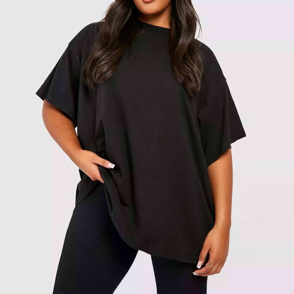 Personalizado rosa de gran tamaño gota hombro camiseta 100% algodón en blanco mujeres camisetas