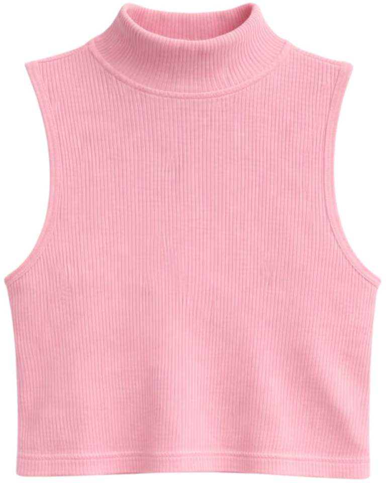 Top corto sin mangas de cuello alto acanalado rosa personalizado, ajustado, elástico, informal para mujer, chaleco básico de moda de verano