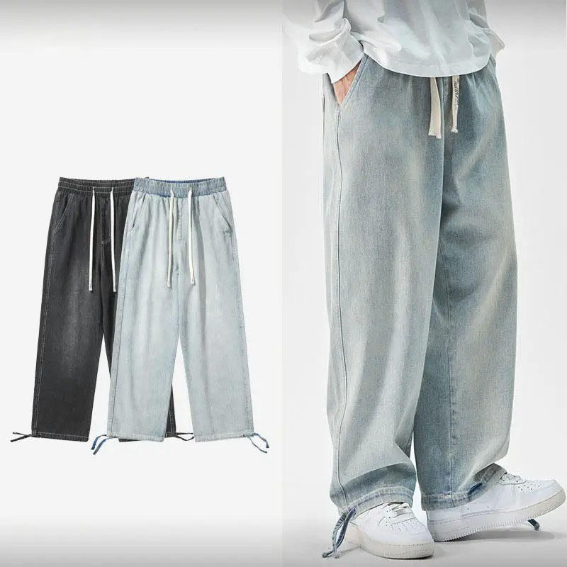 Jeans Holgados Personalizados de Alta Calidad para Hombre, Cintura Media, Estilo Recto, Lavado Claro, Ligeros y Transpirables