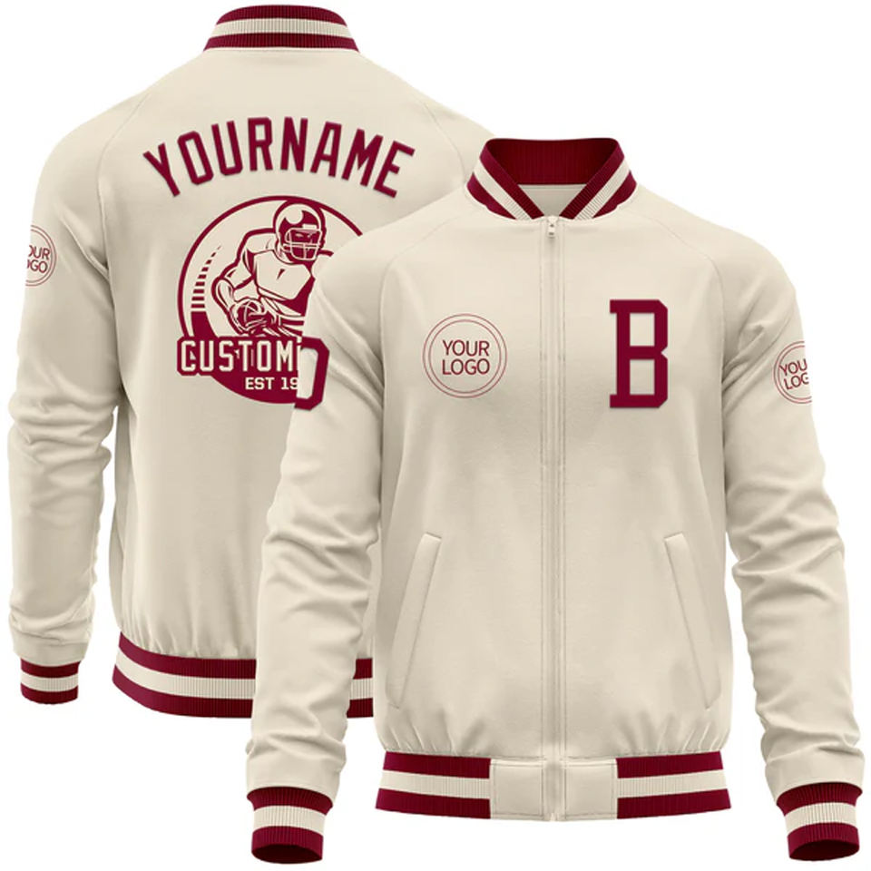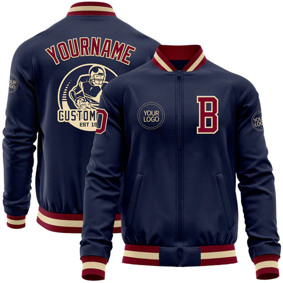 Chaqueta Varsity Personalizada con Logotipo Bordado en la Parte Delantera, Resistente al Viento, 100% Algodón, con Nombre y Número, Proveedor Personalizado al por Mayor OEM/ODM