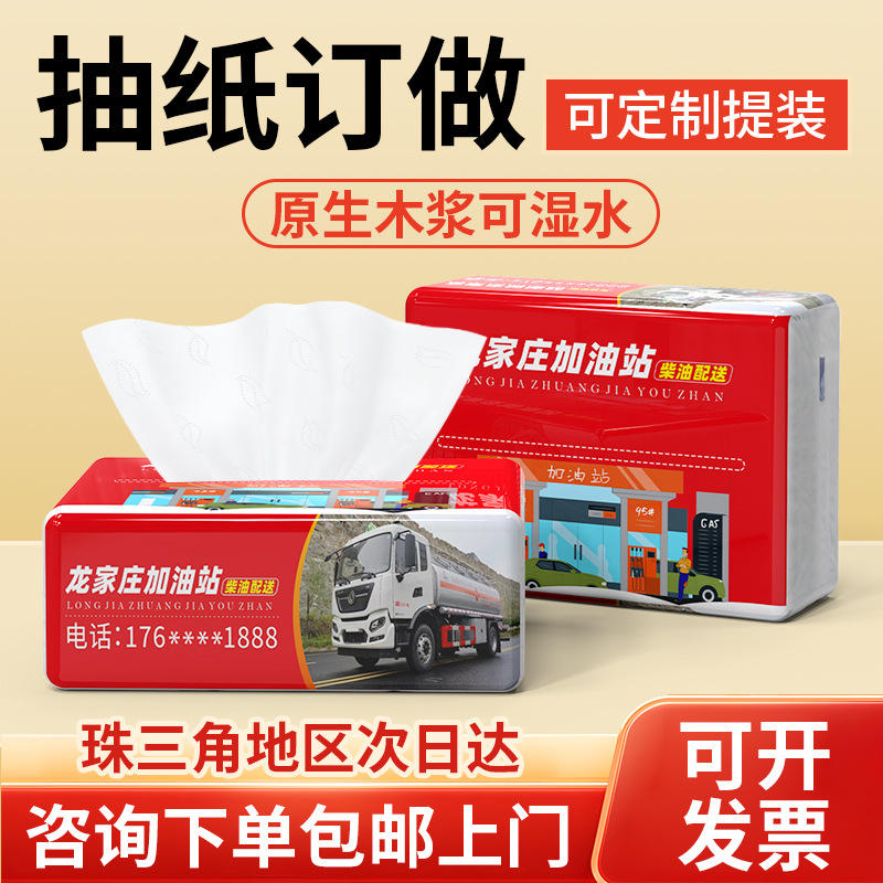 Pañuelos de plástico personalizados en paquete suave, desechables de tres capas con impresión de logotipo para uso en gasolineras y servicios de catering.