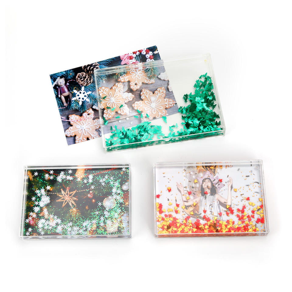 Marco de Fotos de Plástico Personalizado con Relleno de Agua, Marco de Fotos Instantáneo con Arena Movediza, Bloque de Agua con Purpurina Líquida de 4x6