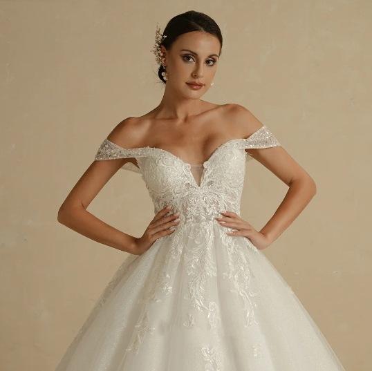 Vestidos de Novia de Talla Grande Personalizados, Estilo Princesa, con Hombros Descubiertos, Sin Mangas, con Brillo, para Mujer
