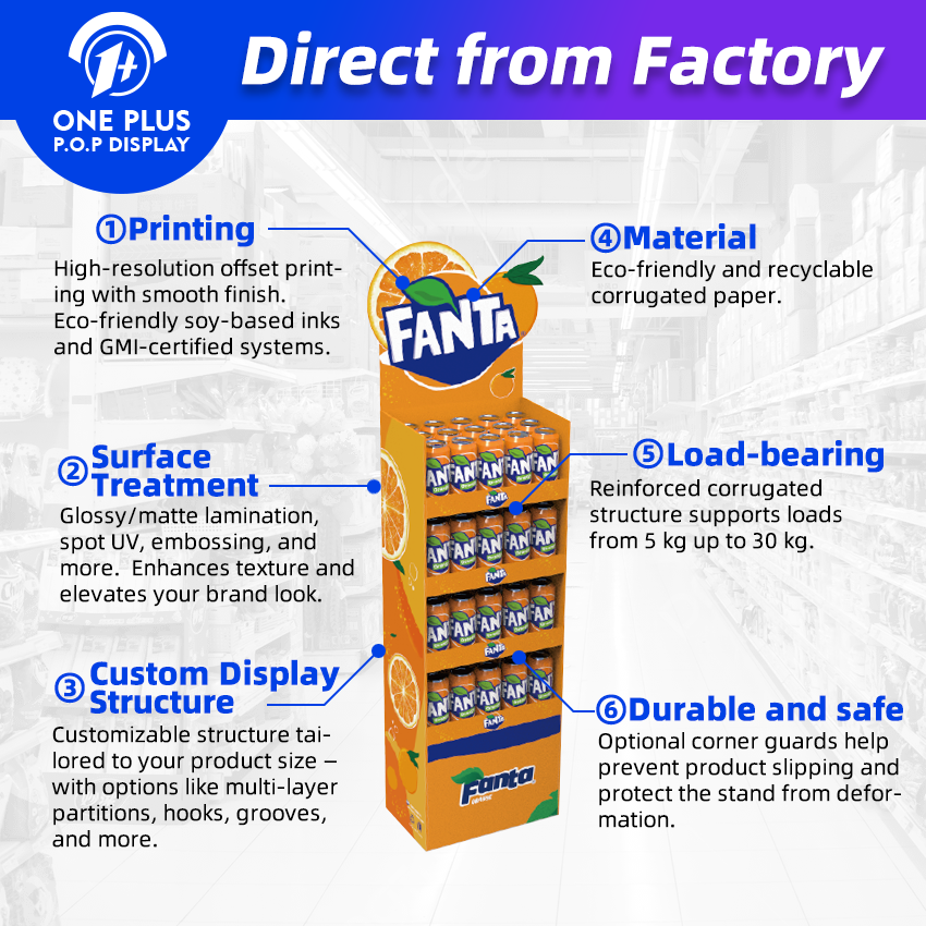 Ventajas:Más de 16 años de experiencia en la fabricación de exhibidores POP